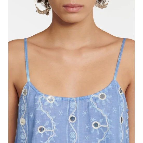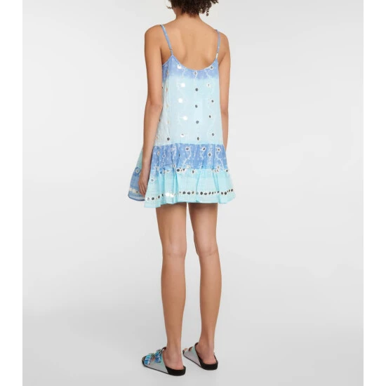 An irresistibly unique addition to your escapist edit, this Juliet Dunn minidress is finished with intricate embroidery and mirror details. It’s designed from tie-dyed cotton with a dropped tier waist and adjustable spaghetti-style straps.