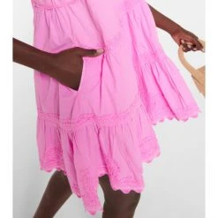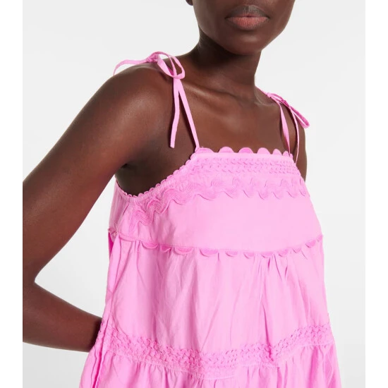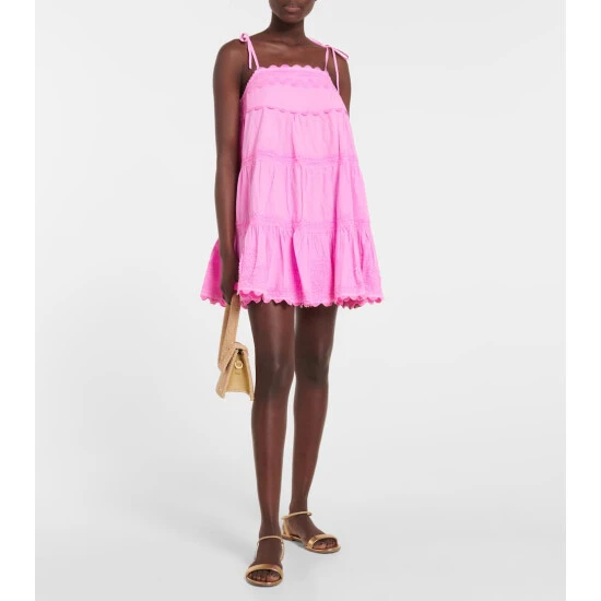Shaped into a breezy, trapezoidal silhouette, this Juliet Dunn minidress is a summer-ready staple. Made from lightweight cotton, it’s decorated with scalloped trims, tonal embroidery, and bow-detailed shoulder straps.