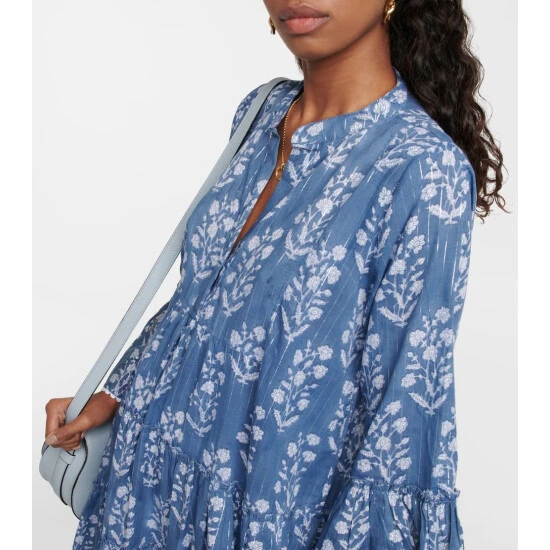 This chic and versatile minidress from Juliet Dunn is made from a lightweight cotton blend with shimmering metallic threads. It’s printed with a floral motif all over and accented with scalloped trims.