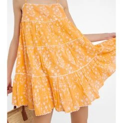 London-based designer Juliet Dunn employs Indian artisans to apply traditional techniques such as block printing, mirror work, and embroidery to her designs. This tiered minidress features scalloped trims, a delicate floral print, and shimmering vertical Lurex® stripes.