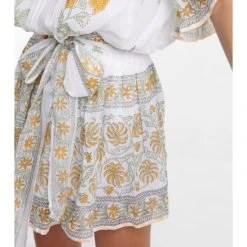 Made from cotton that’s printed with lush florals, this shirt dress from Juliet Dunn has a buttoned front and a loose fit that can be cinched with its self-tie waist.