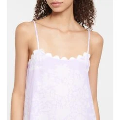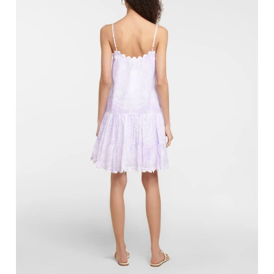 Made from lightweight cotton voile, this minidress from Juliet Dunn is designed for warm summer days. The purple style is cut to a loose silhouette with a dropped waistline and scalloped trims.