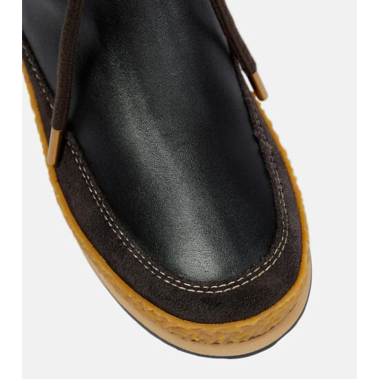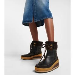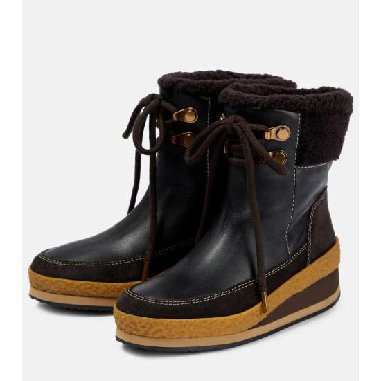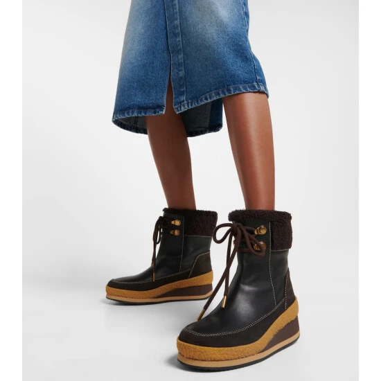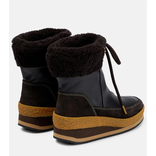 The Cameron ankle boots from See By Chloé are made from leather and suede panels. This design has a lace-up front and a soft shearling trim at the cuffs.