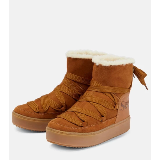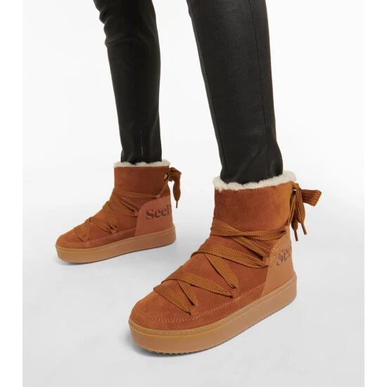 Prepare for cold weather with the Charlee snow boots from See By Chloé. They’re made from smooth suede with branded calf leather panels and tactile shearling lining, and feature criss-cross laces for a secure fit.
