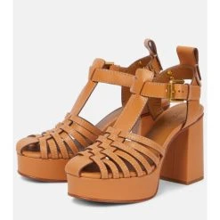 The Cila sandals from See By Chloé are an utterly classic style in a timeless colorway. They’re made from tan-brown leather with contrast topstitching, a cage toe, and platform heels.