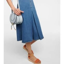 This minidress from See By Chloé is a wardrobe essential. Made in Italy from denim, it has a streamlined silhouette with a square neckline and a pleated detail in the front.
