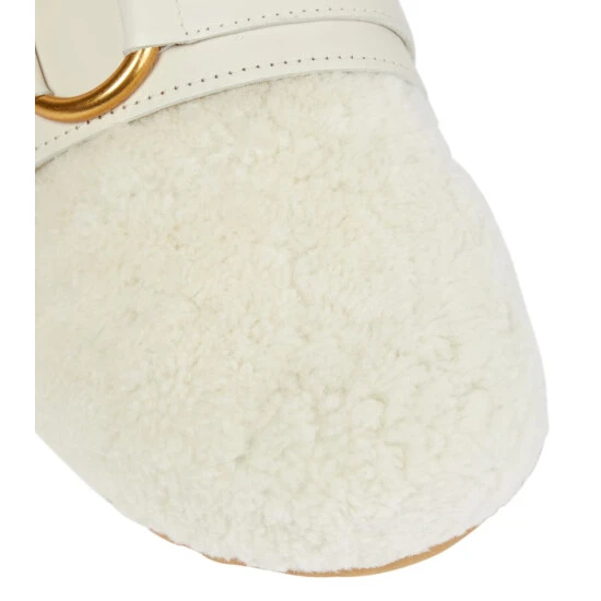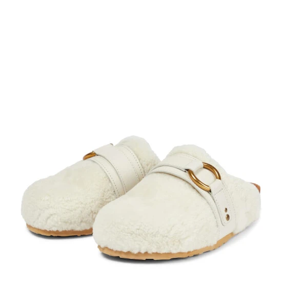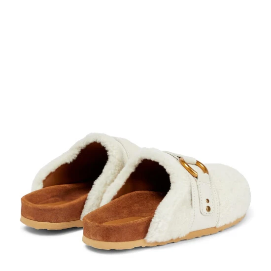 See By Chloé crafts these white mule slides with shearling uppers. Set on lightweight cork midsoles and rubber soles, this comfortable pair is detailed with a gold-toned ring on the front strap.
