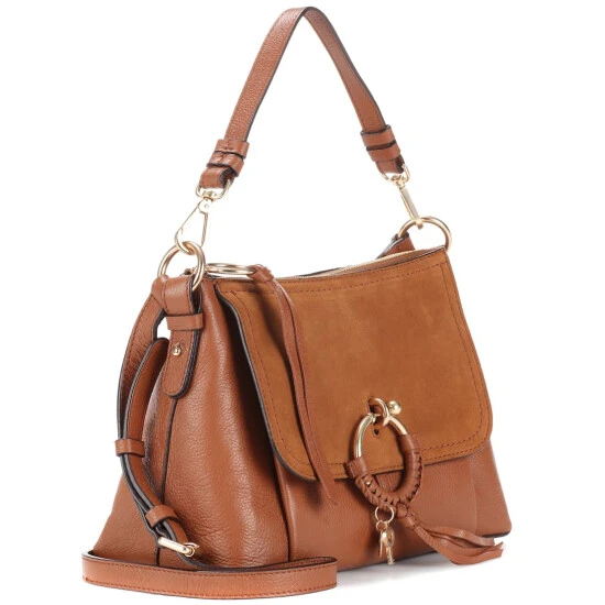 Sling See by Chloé’s Joan Medium bag over your shoulder for busy days in the city. Crafted from textured leather in a classic caramel hue, this style features all the See by Chloé hallmarks – glossy golden hardware, tassel detailing and a golden hoop closure. A tonal suede panel hides an additional pocket, handy for storing your keys or phone.