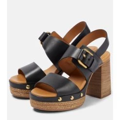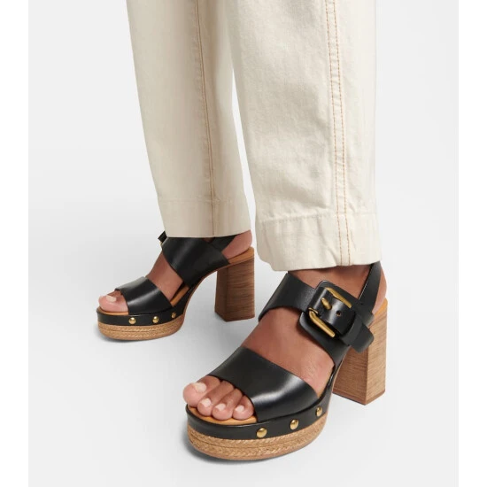 See By Chloé’s Joline clogs are a casual summer footwear choice with ’70s flair. This open-toed style features buckled leather uppers, gold-tone studs, and typical wooden platform soles.