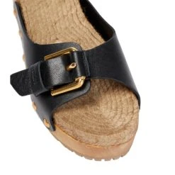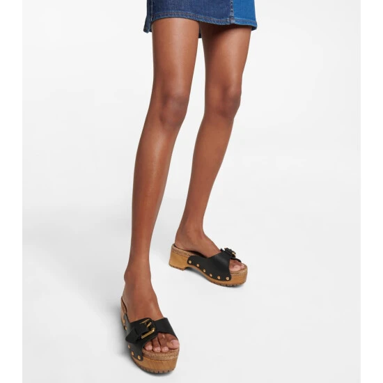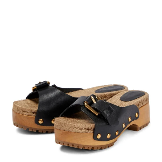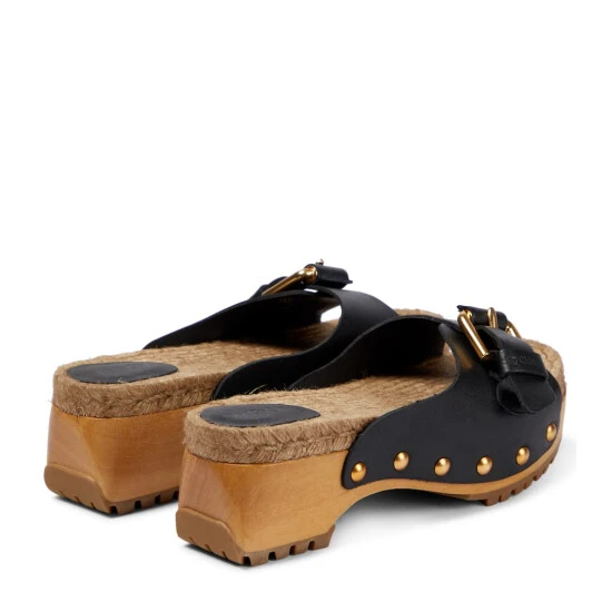 See By Chloé’s Joline clogs are a casual summer footwear choice with ’70s flair. This open-toed style features buckled leather uppers, gold-tone studs and typical wooden platform soles.