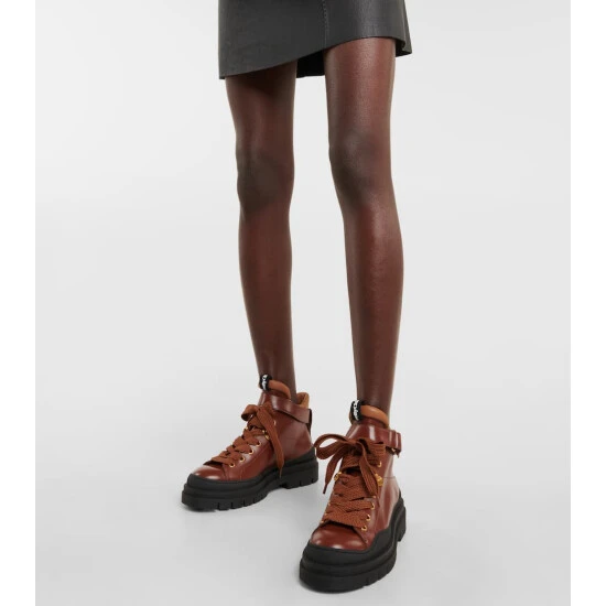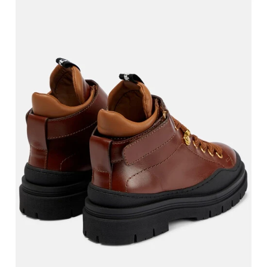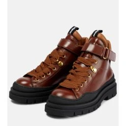 Brave the outdoors in functional, yet fashionable footwear like See By Chloé’s Jolya ankle boots. Made from smooth brown leather, they feature lace-up fronts, VELCRO® straps, logo pull tabs, and practical, lugged rubber soles.