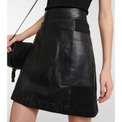 This See By Chloé miniskirt is made from nappa leather and deadstock virgin wool milano knit. It has an A-line silhouette, oversized patch pockets and a checked lining.