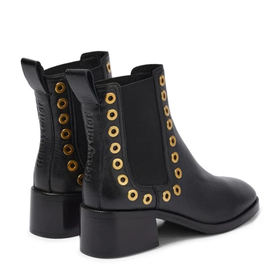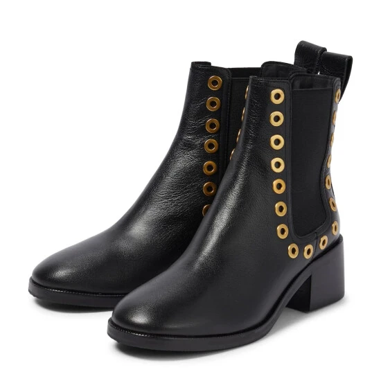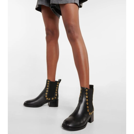 See By Chloé adds a rebellious edge to its Lexy Chelsea boots with golden eyelet trim around the elasticated inserts. The lamb leather design has a logo-debossed rear, block heels, and a tonal pull tab.