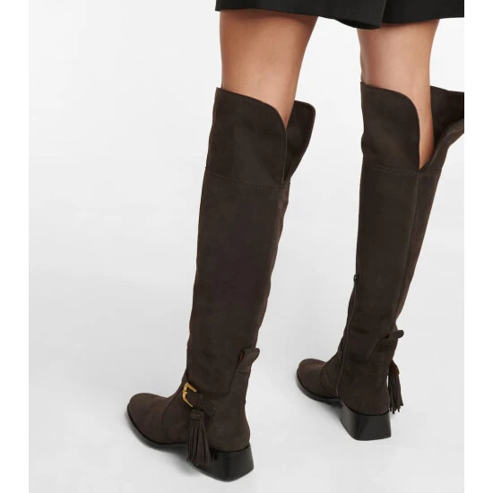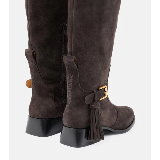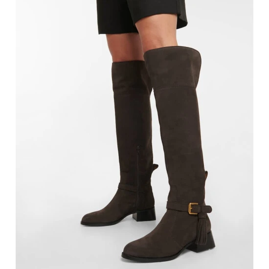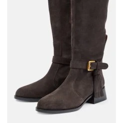 The Lory boots from See By Chloé are made in Spain from dark brown suede. They have an over-the-knee silhouette with low block heels and they’re accented with a buckled detail and a tassel at the sides