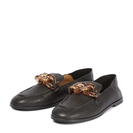 These black Mahe loafers from See By Chloé have collapsible heels so you can also wear them as mules. Made in Spain from leather, they have chain straps and slender heels.