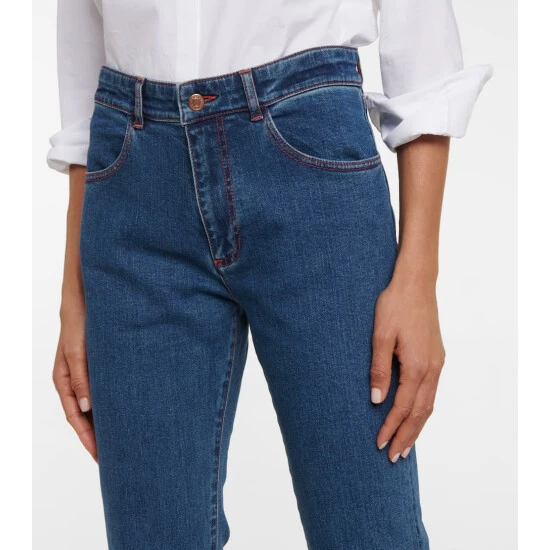 These mid-rise flared jeans from See by Chloé are the ideal wardrobe staple for dressing up or down. They’re cropped at the calves and feature a red top-stitching.