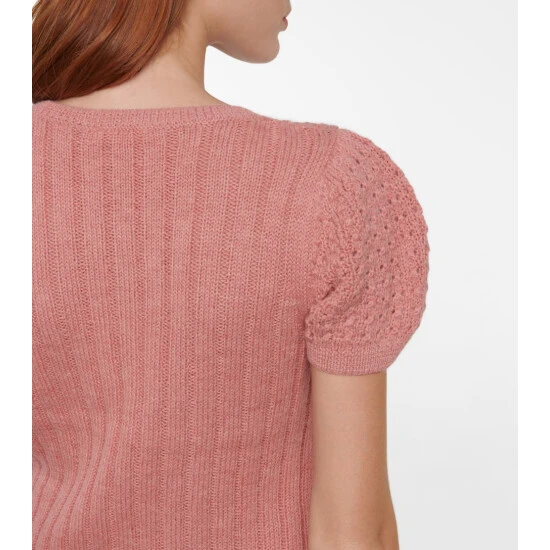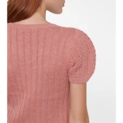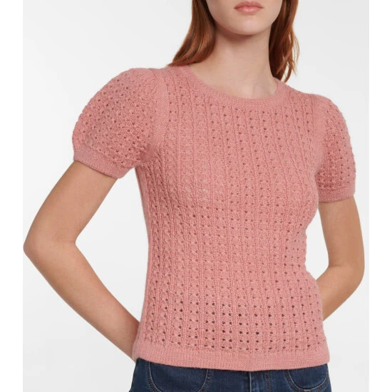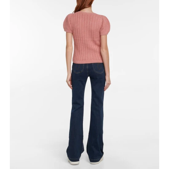 Channel unapologetic femininity with See By Chloé’s knitted designs. This blush pink top was crafted from soft alpaca wool-blend yarns and shaped into a relaxed fit with slightly puffed short sleeves.