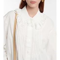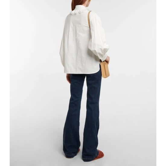 Cut from cotton to a relaxed fit with lightly dropped shoulders, this See By Chloé shirt is elegantly pleated at the chest and sleeves. It’s distinguished by a ruffled, lace-inspired trim at the collar.