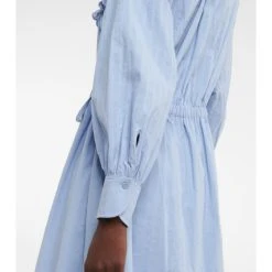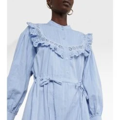 This charming shirt dress from See By Chloé is made from breathable cotton poplin. It has a high collar with broderie anglaise ruffles at the chest and an adjustable drawstring waist.