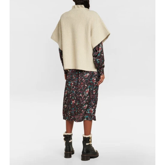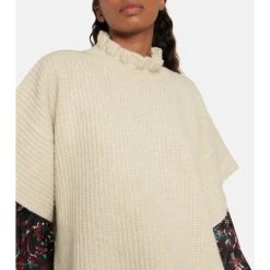 This sweater from See By Chloé is knitted from a chunky wool-blend in a poncho silhouette with wide sleeves. The ruffled neck adds a delicate touch to this relaxed style.